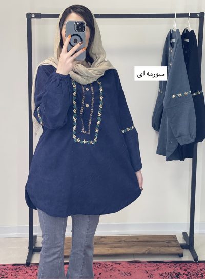 تونیک مانتویی گلدوزی مخمل بغل دکمه